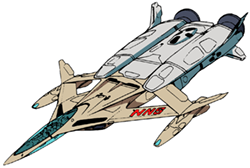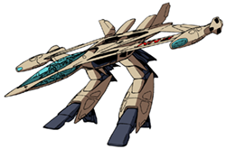 The VC-079 is a civilian aerospace craft owned and operated by SNN, one of the major news agencies on Earth. The craft is designed to work in both the atmosphere and space with a special launch booster that enables the VC-079 to achieve orbit. The cockpit is very large and features a transparent canopy on both the top and bottom sections of the nose. Equipped with a limited transformation system the civilian valkyrie can angle the engines downward to act as legs for vertical take off and landing capability. Hibiki Kanzaki piloted the VC-079 owned by SNN from their corporate headquarters when the Mardook attacked Earth in 2092. Hibiki's passenger was SNN reporter Dennis, who's coverage of the war with the Mardook would tragically turn out to be his final assignment.