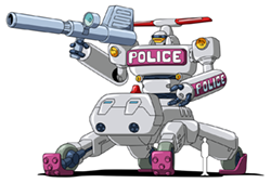 The City Police Patroid is a variable security vehicle capable of operating in an armored car "Travelling" mode and a four-legged "Patroid" configuration. The City Police Patroid is likely deployed as an emergency vehicle operated by a specific response unit within the City 7 police force. Although the City Police Patroid is a non-military vehicle, it is armed with an anti-armor bazooka fielding enough firepower to destroy a variable fighter like the Fz-109A Elgerzorene. The City Police Patroid features the typical passive visual warnings in the form of markings (livery) upon the exterior of the vehicle. The vehicle also includes active audio and visual warning systems produced via warning sirens and flashing colored beacons/lightbars mounted upon the top of the car and patroid modes. In 2045 the 37th long-distance colonization fleet fought against the Protodevlin, deploying City Police Patroids for emergencies to counter enemy incursions into the Macross 7 fleet ships such as City 7.