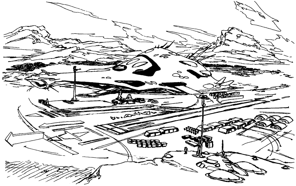 Design Features: modular craft separation; 12 x large re-entry pod launch bays (orbital module); 1 x standard pod hatch, ventral side (assault module)