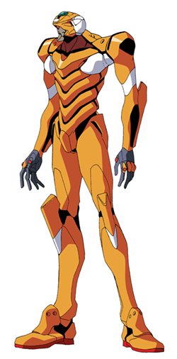 The Evangelion Unit-00 (or Eva-00) is the first successful operational Evangelion. Being a prototype, Unit-00 was not originally equipped for combat. However, it was later upgraded for battle against the Angels. The outward appearance of the Evangelions lead some to believe they are giant robots. However, Evangelions are actually bio-mechanical creations like a cyborg rather than a true robot. The Evangelion is grown as a genetically engineered organism with mechanical portions such as an artificial section of spine. This artificial spine includes a circular gap through which a device called the "entry plug" can be inserted; a large cynlinder containing the cockpit and controls for the EVA pilot. The pilot within the entry plug is submerged in LCL, an amber-colored fluid for liquid breathing that also acts as a medium through which a direct mental link is established between pilot and EVA. Inserting the entry plug into the EVA fills the spinal gap, completing the nerve connections between head and body of the EVA. The external metal structure of the EVA is not armor but restraining metal plates designed to help retain control of the EVA while also disguising the being's true appearance. Initially the Evangelions have only a limited internal battery for power and can operate beyond short periods only via an Umbilical Cable providing them with large amounts of electrical power.