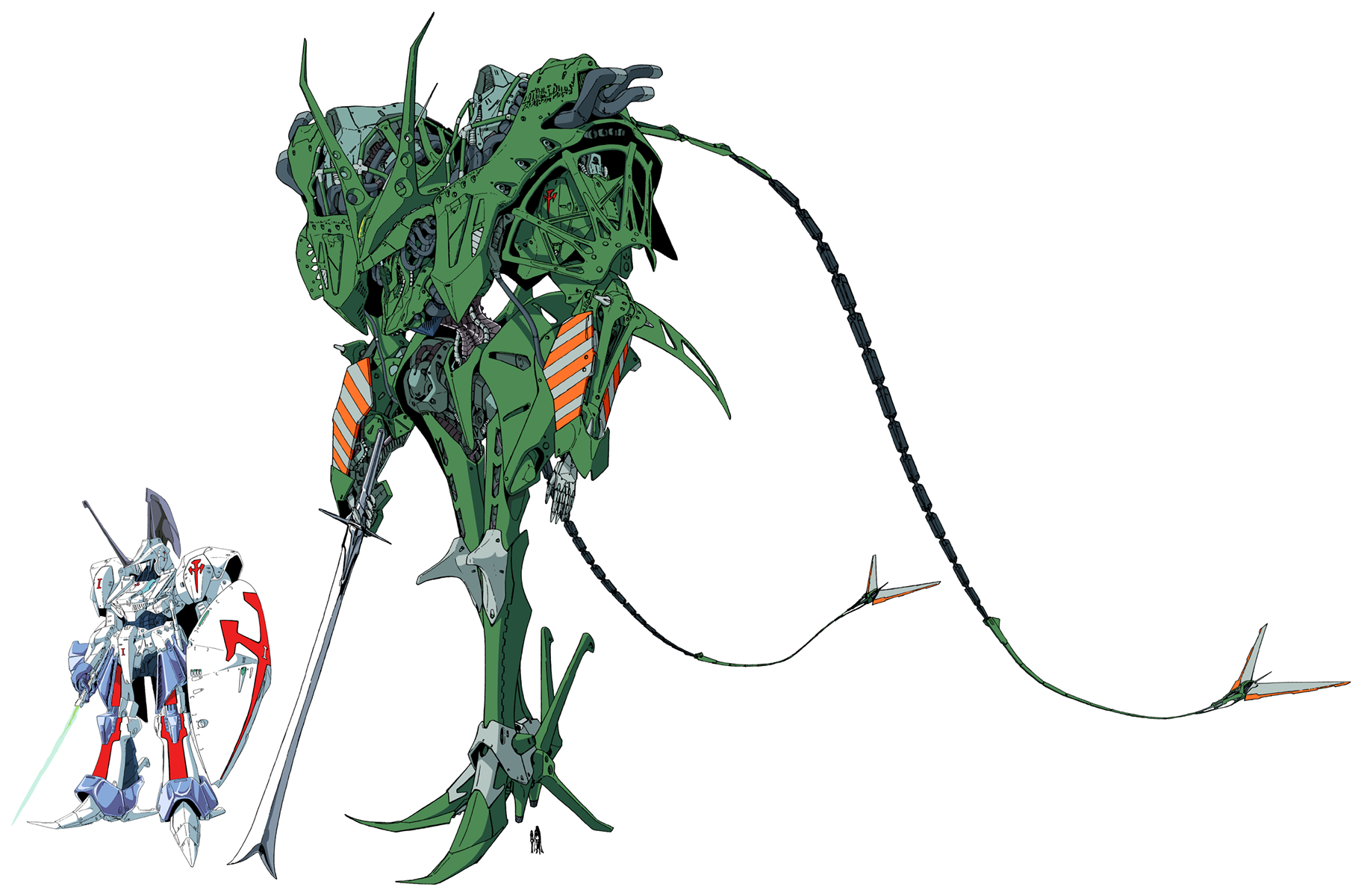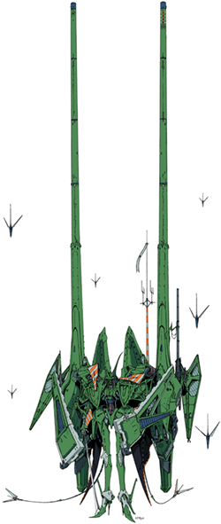 In spite of (or perhaps because of) the enormous financial and engineering resources to create the Jagd Mirage, only two were built; the [L]-Jagd Mirage (assigned to Green Left, nicknamed Green Demon) and the [R]-Dragon (assigned to Orange Right, nicknamed Orange Dragon). Contruction began in J.C. 2992 and the Jagd Mirage was officially revealed in J.C. 3007 after which these immense Mortar Headds would dominate the battlefield for nearly 1,000 years. The Green Demon was the first to appear on the battlefield fully armed when Amaterasu invaded the Trün Republic on Planet Addler in J.C. 3159. The truly frightening power of the Jagd Mirage and the buster launchers was eventually revealed when the Green Demon and Orange Dragon both combined their firepower to destroy the Planet Kalamity Godarce on J.C. 3960. The [L]-Jagd Mirage was piloted at times by Bugle de’Leizer (Schaft) & Fatima Parthenon, by Amaterasu dis Grees Sarion & Fatima Majer and lastly at once by Upandla Raymu & Fatima Parthenon. The [R]-Dragon was piloted by Headdliner F.U. Rognar and Fatima Eatta and later by Amaterasu-no-Mikado and Fatima Est.