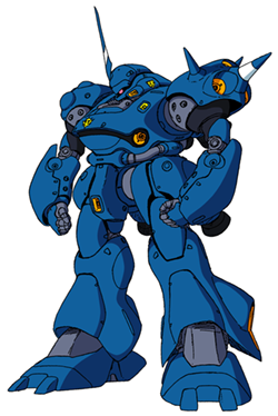 Description: The MS-18E Kämpfer (the German word "käempfer" translating to "fighter" or "champion") was a fast assault, hit-and-run mobile suit developed by the Principality of Zeon during the late stages of the One Year War in UC 0079 (Universal Century). The Kämpfer sacrificed armor for speed, using numerous high-fuel-consumption thrusters for fast strikes and quick disengagements. The incredible speed of the MS-18E was a devastating asset when properly used in conjunction with a formidable armament that included giant bazookas, shotguns and panzer fausts as well as a pair of beam sabers and dual head-mounted vulcan guns. In December UC 0079 Zeon operative Mikhail Kaminsky piloted the Kämpfer in a failed attack against the Earth Federation Forces new RX-78NT-1 Gundam G-4 Alex mobile suit.