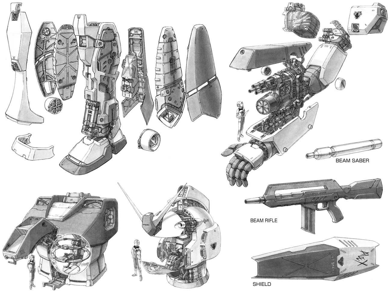 Description: The original RX-78NT-1 Gundam Alex was designed by Yutaka Izubuchi. Although the basic structure of the mobile suit design remains the same as the original, Hajime Katoki used his own art style to create this rendition of the Alex.
