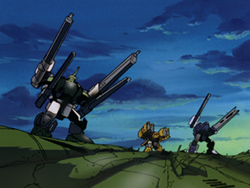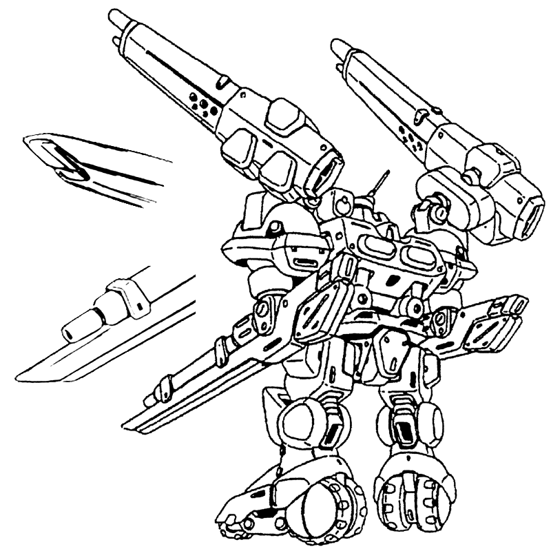 Successor to Tomahawk. In addition to armament, movement was improved with a wider degree of freedom in the joints. Like all destroids of this generation, rollers are installed in the soles of the feet to overcome the issue of speed.