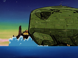 Main Machinery: OverTechnology main engine thruster (center aft); OverTechnology vernier thrusters, OverTechnology gravity control system; OverTechnology fold system