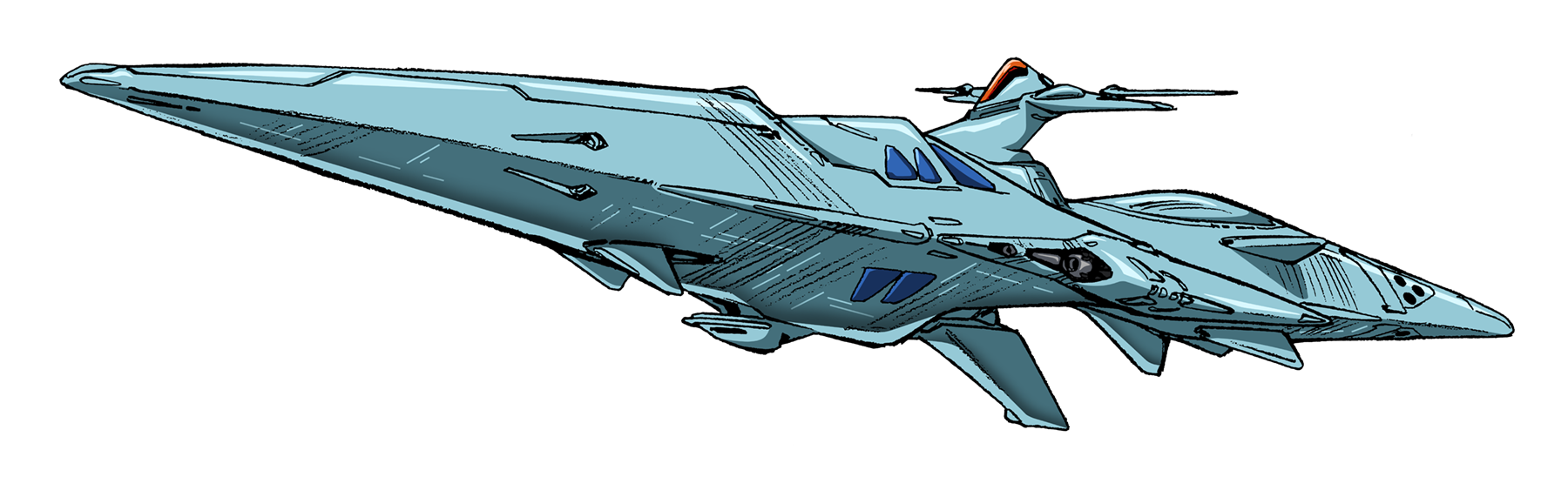 The smallest of the UN Spacy ships of the line, the Northampton Class Stealth Frigate is an easily constructed vessel and functions as the main-force warship for colonization fleets. The main engines are built around the center circumference of the rear hull and supply the 250-meter long frigate with excellent speed and maneuverability that compensates for a lack of heavy firepower. Like many of the next generation space vessels of the UNG, the stealth frigate features a stealth composition and functions as a carrier ship for variable fighters. In battle the stealth frigate utilizes several concealed launch bays for the fighters and has several anti-ship missile launchers and converging energy beam cannons. The widespread use of this class has lead to the deployment of numerous modified Northampton frigates such as firepower-enhanced, reconnaissance and early-warning variants. The stealth frigates have also been adopted by Zentradi crews and these ships feature more Zentradi technology with distinctive hull designs. The stealth frigate fulfill a primary operational role and thus there are large numbers of these ships serving in the UN Spacy fleets, from planetary defense around Earth to far reaching colony fleets like the 37th long-distance colonization fleet. Stealth Frigates serve as the first defensive line in the emigration fleets, with aircraft carriers forming the second defense line. Additionally, a squadron of stealth frigates will operate as "pilot fish" for surveying routes and securing supplies ahead of a emigration fleet. By 2045, there were more than 9,000 Northampton Class Stealth Space Frigates built. The Northampton holds the distinction of being the New UN Forces most produced starship and is still in mass production as of 2059 (Macross Chronicle 2E Frontier Mechanic Sheet NUNS 06A).