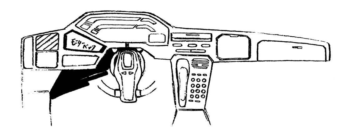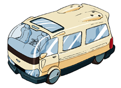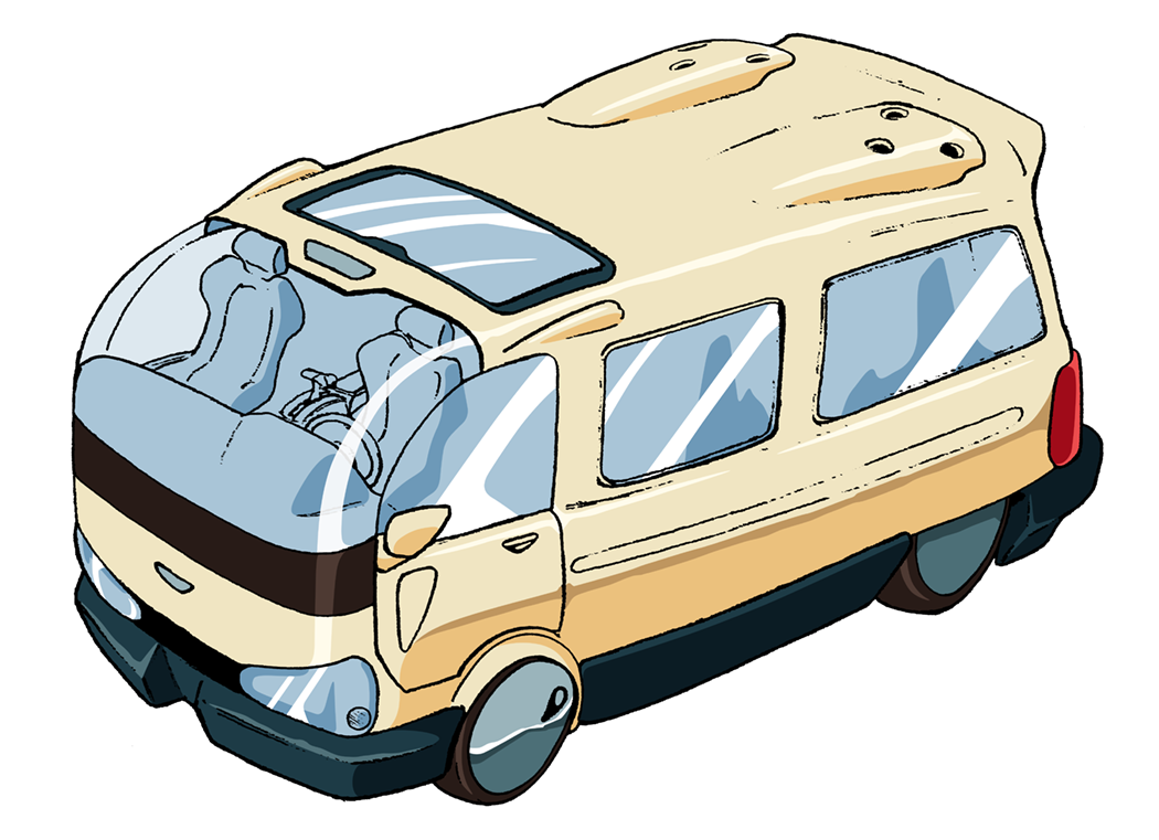 The Wagon is a compact-size multi-purpose vehicle with room for 6-7 passengers (plus cargo/luggage). Vehicles of this type are a common sight within City 7, driven by the various citizens of the fleet. As with many vehicles in the 37th long-distance colonization fleet, the wagon can utilize flight thrusters built into the top and underside of the vehicle to allow maneuvering in a vacuum. An enclosed life support system protects the occupants during these trips into space. The wagon shown here is driven by Ray Lovelock and often used to transport himself and his fellow band mates of Fire Bomber (Macross Chronicle 2E Macross 7 Mechanic Sheet 03B).