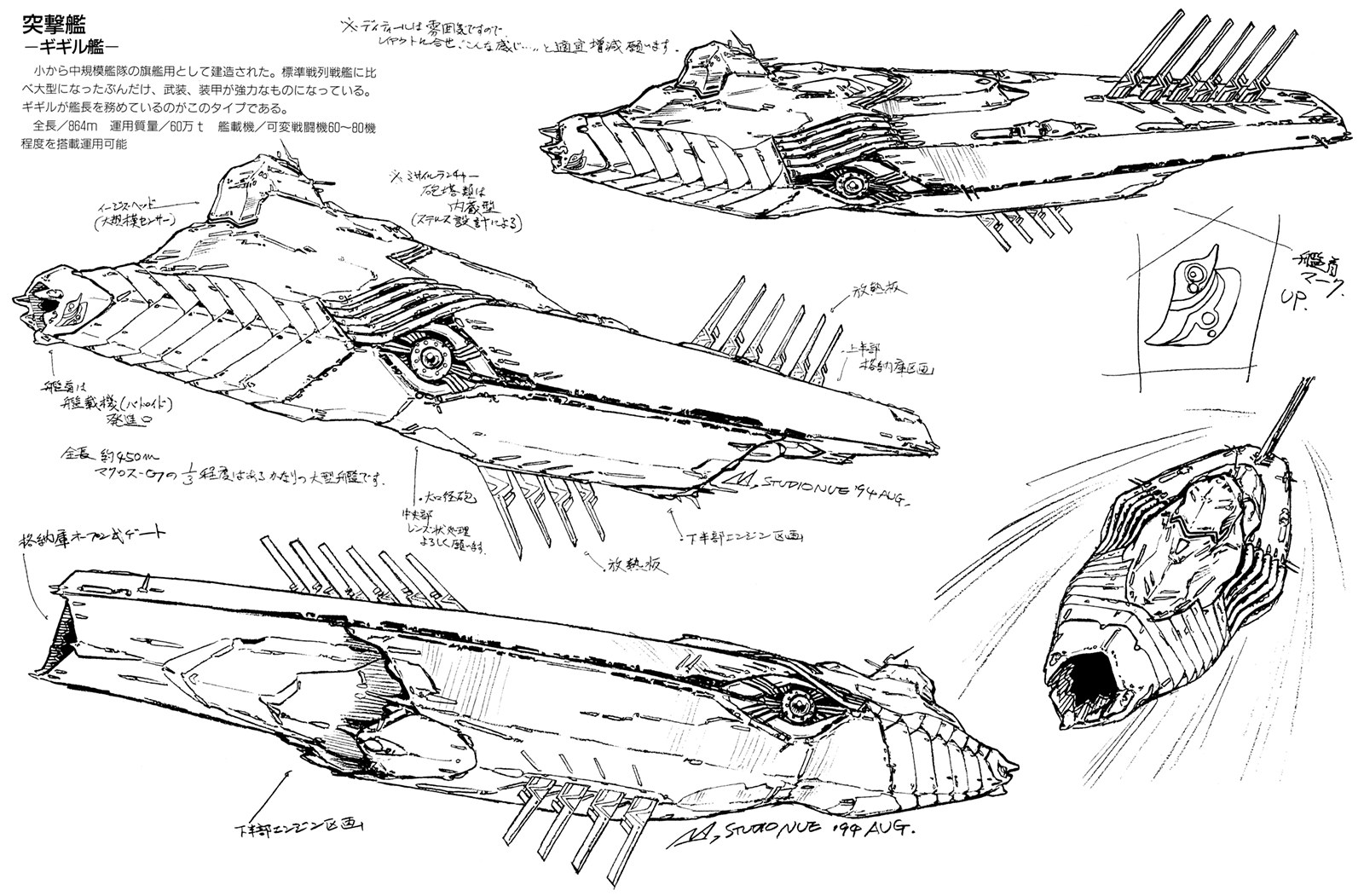 Structure: open-style hanger gate (located in aft section); battroid launch port (located in forward bow)