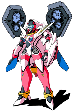 Mylene Flare Jenius piloted the VF-11MAXL Custom with a similar colored sound booster designated Unit 2. Like Unit 1, the sound booster unit 2 is capable of independent flight and docking with the VF-11MAXL Custom in combat. A set of three ports allow docking with the rear torso of the VF-11MAXL battroid mode and two dorsal sound projector sections can open when activated. While Mylene can produce a considerable amount of sound energy herself, her abilities are best put to use when she sings in concert with Nekki Basara and fellow band mates Ray Lovelock and Veffidas Feaze. Unit 2 is then linked with Unit 1 and Unit 3 to maximize the sound energy and project it upon Protodeviln Units.