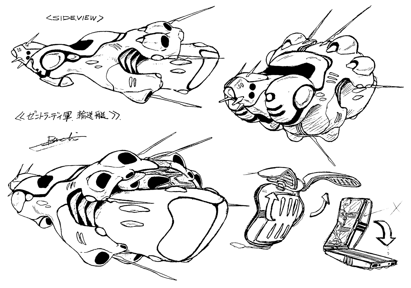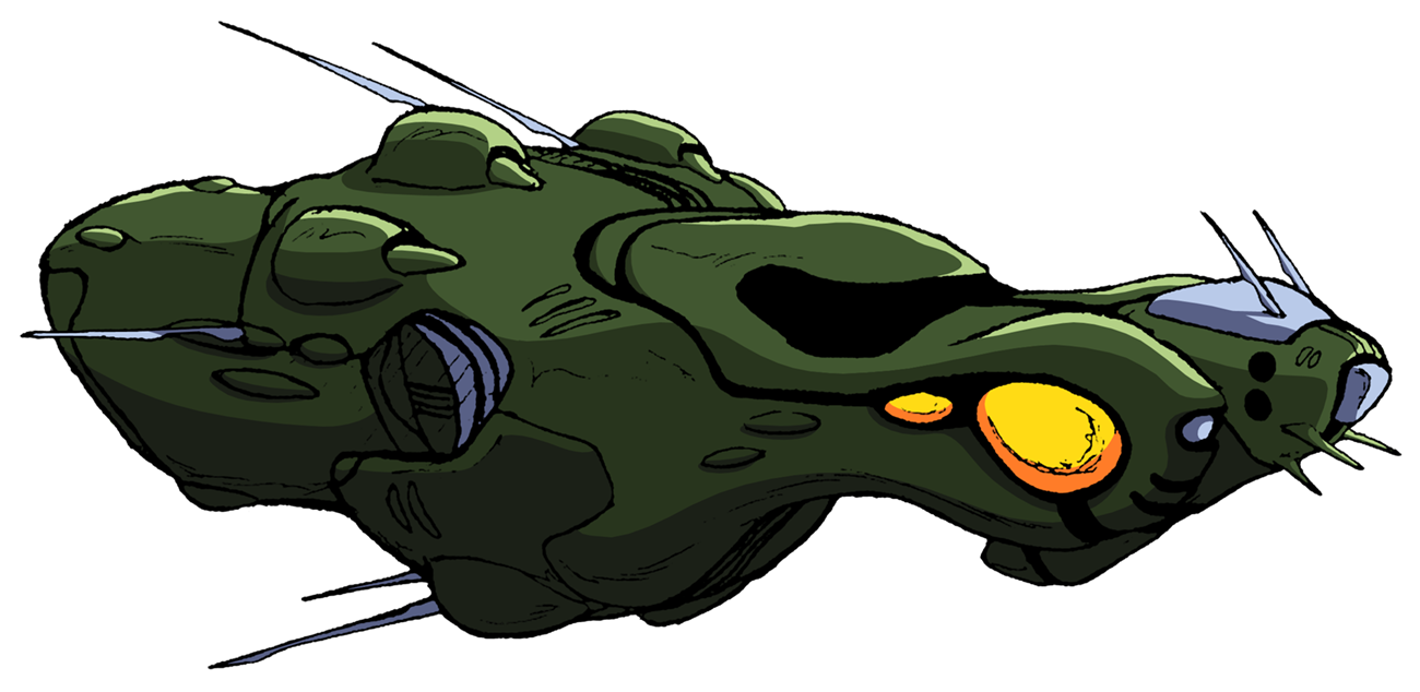 The Zentradi Light Transport Boat functions as an extended range deployment/retrieval ship either carrying troops and mecha into battle or transporting units back to a larger carrier. At 250 meters in length, the Light Transport Boat is designed with a large internal bay that can hold personnel or even vehicles. Entrance and egress for the main bay is achieved through a single main hangar door at the rear of the craft, protected by two exterior "wing" doors. The large cargo bay can hold up to 25 fully equipped personnel or can hold a lesser number of Reguld and Nousjadeul-Ger battle suits. The Light Transport Boat is a non-combat ship without a fold system, but does feature small guns for defense. One notable operation involving a Light Transport Boat was the Zentradi capture of Roy Focker, Hikaru Ichijo, Misa Hayase, Lynn Kaifun and Lynn Minmay within the rings of Saturn during Space War I.