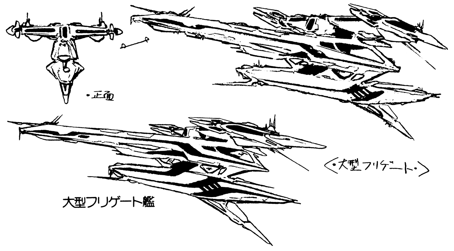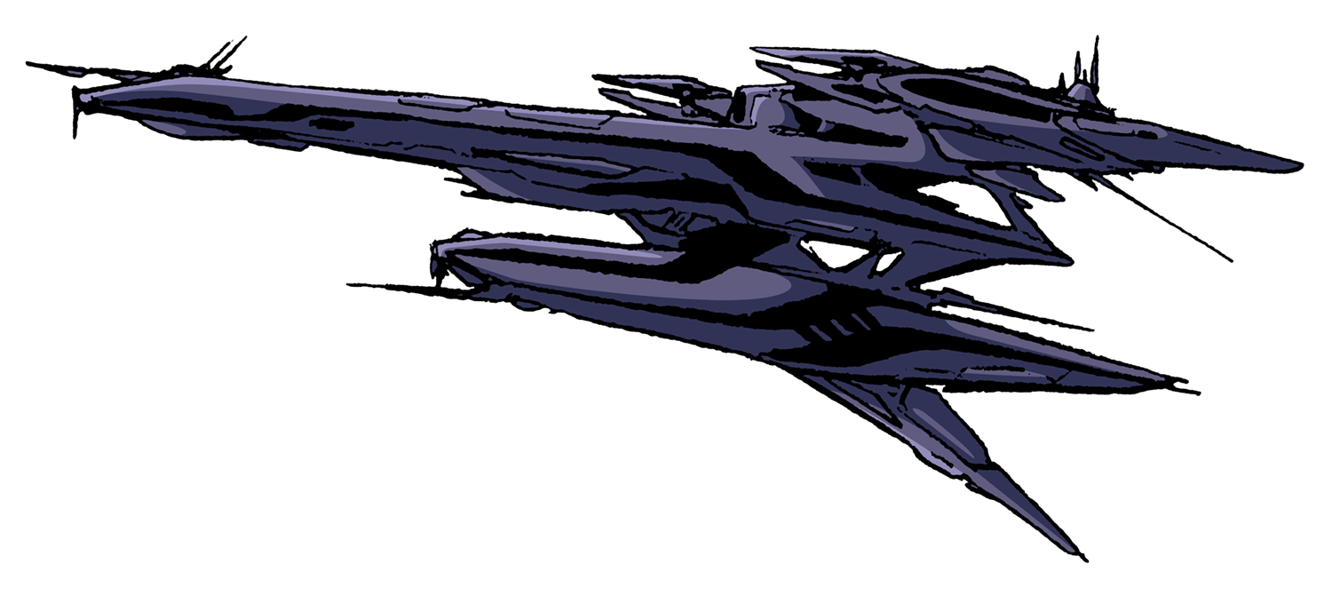 This class of ship is slightly smaller than the Standard Battleship and is notable for a hull separated into four sections that form a unique "T" shape when approached from the bow. Two large thrusters are mounted port and starboard, a third thruster mounted center and a large guided beam gun mounted on the lower hull. This ship class performs such duties as flagship defence.