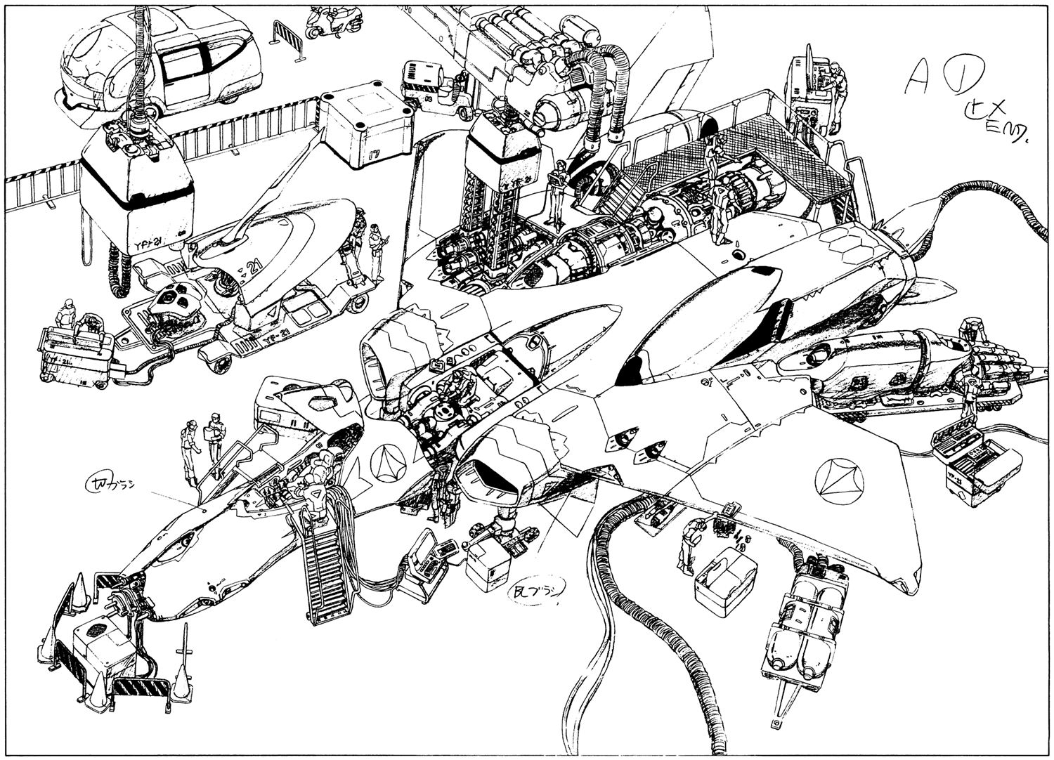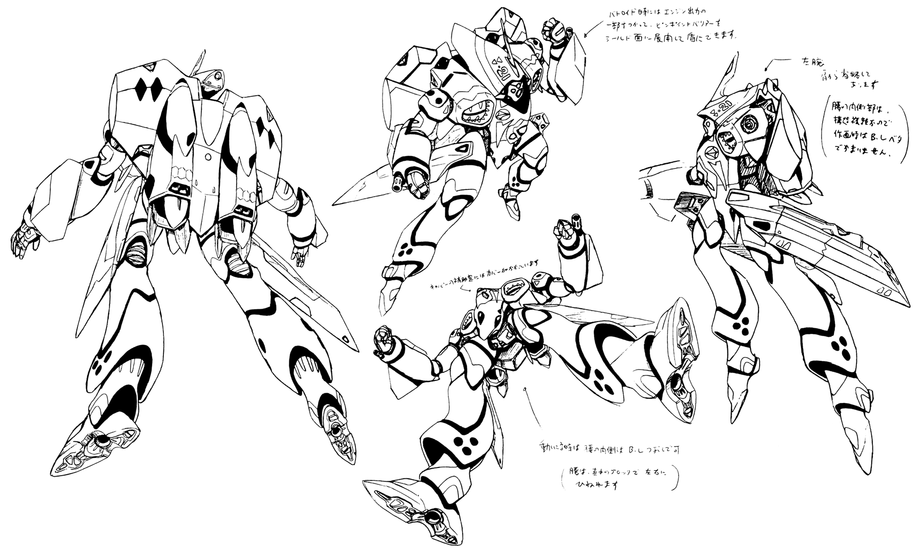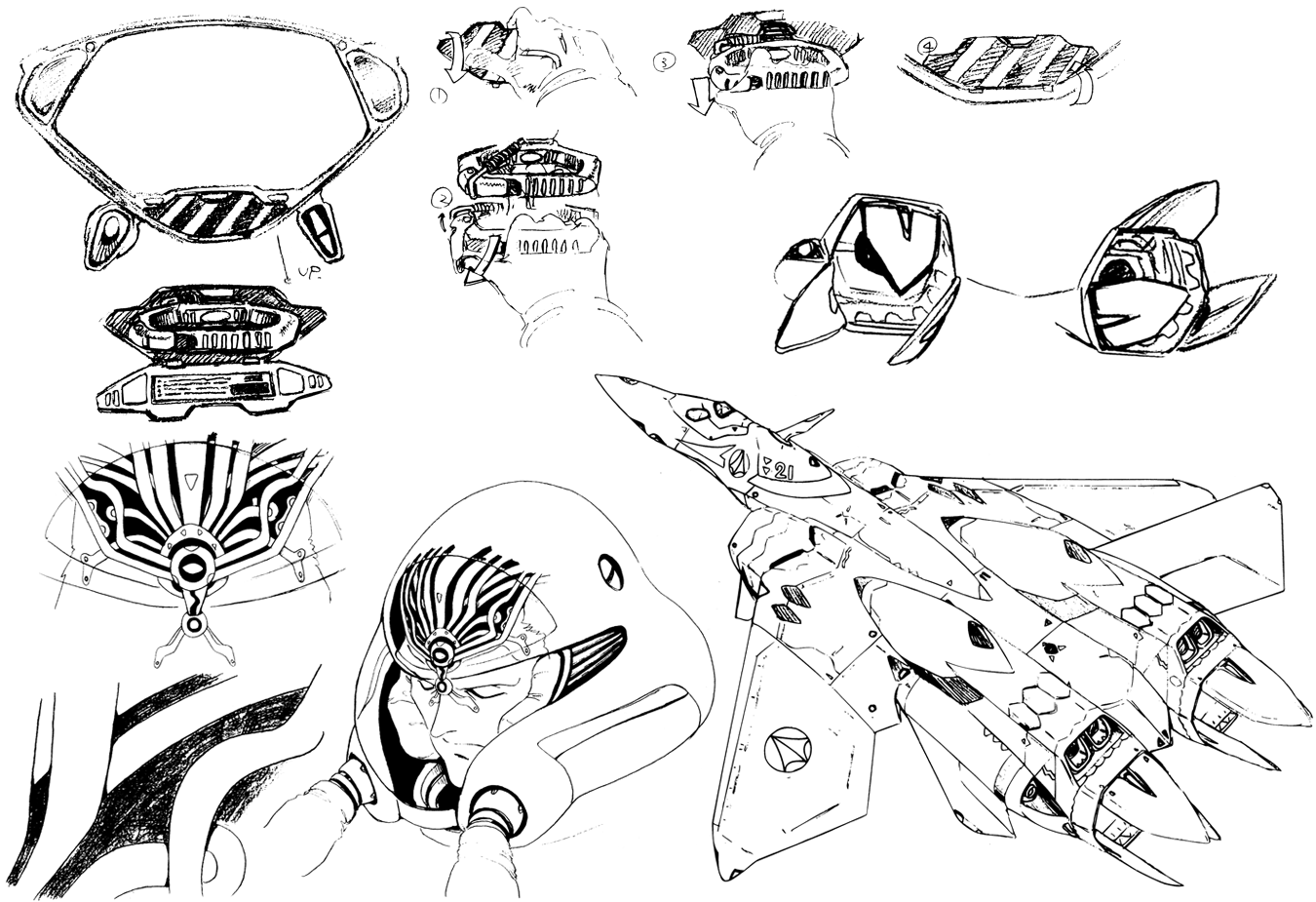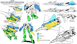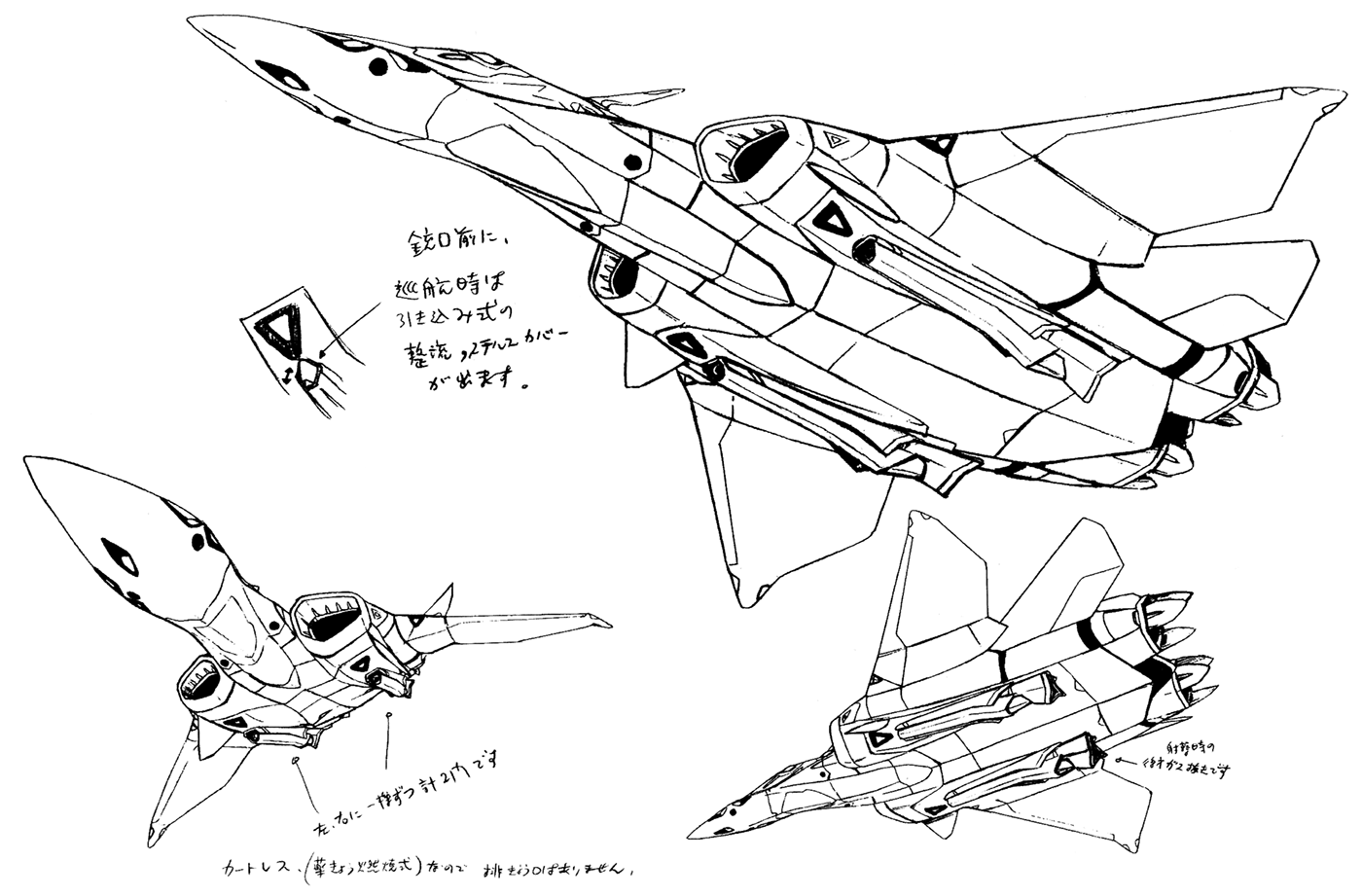 Original mechanical designer: Shoji Kawamori, Kazutaka Miyatake (cockpit), Shigeki Ninomiya (colored schematics) |
