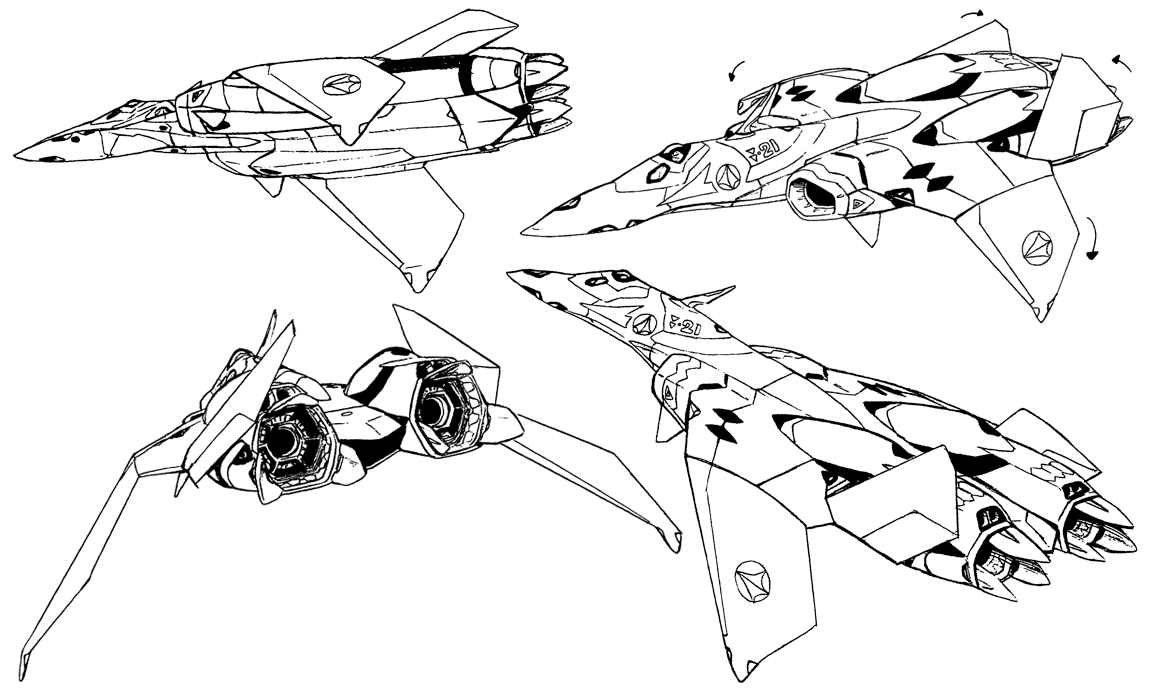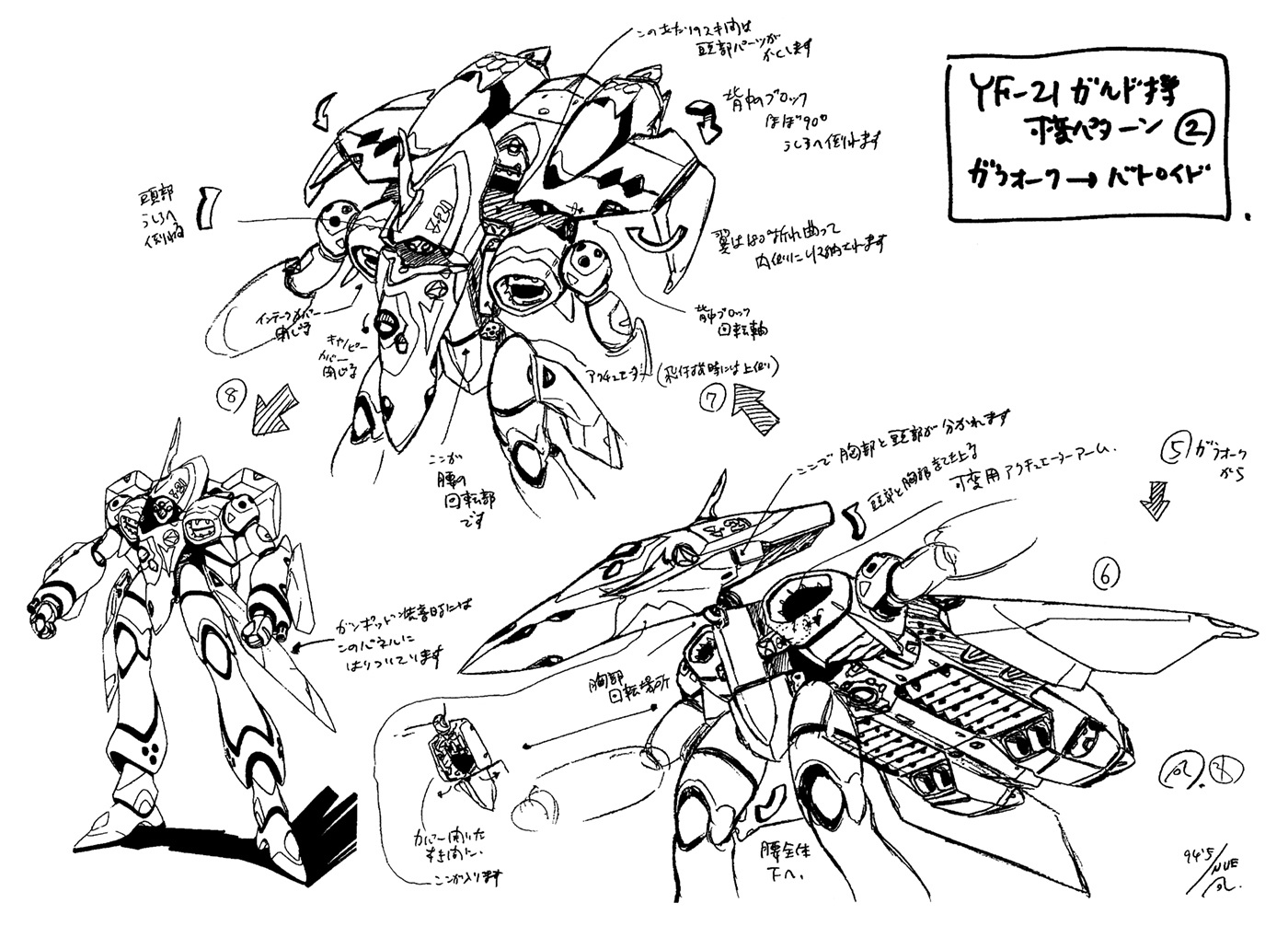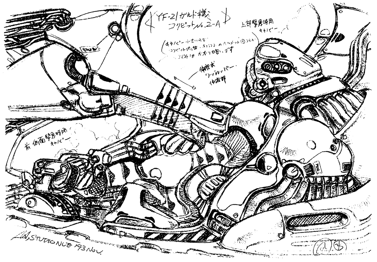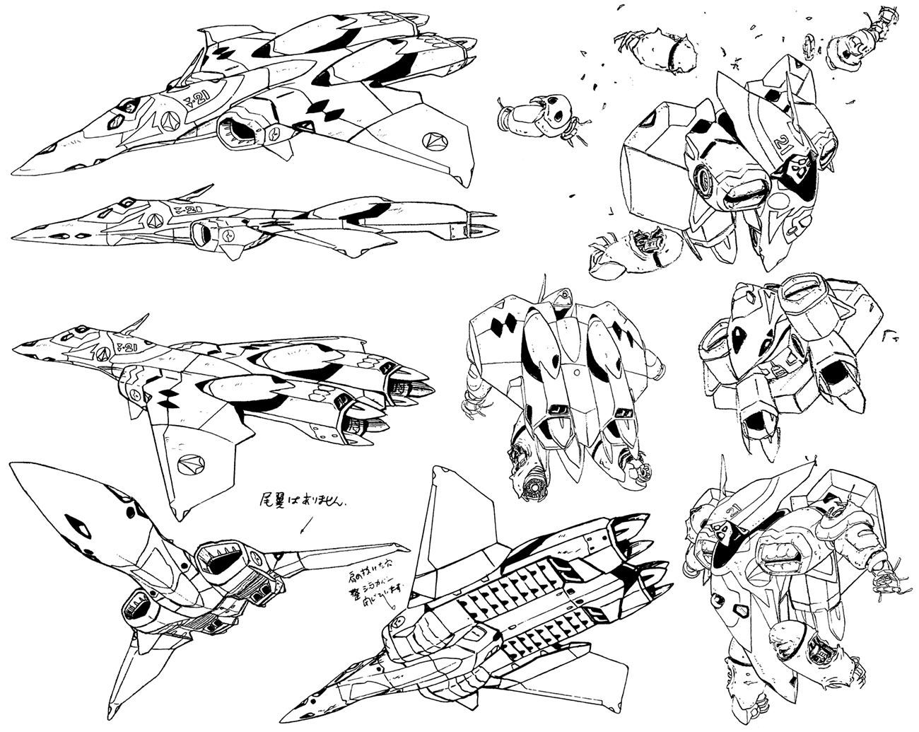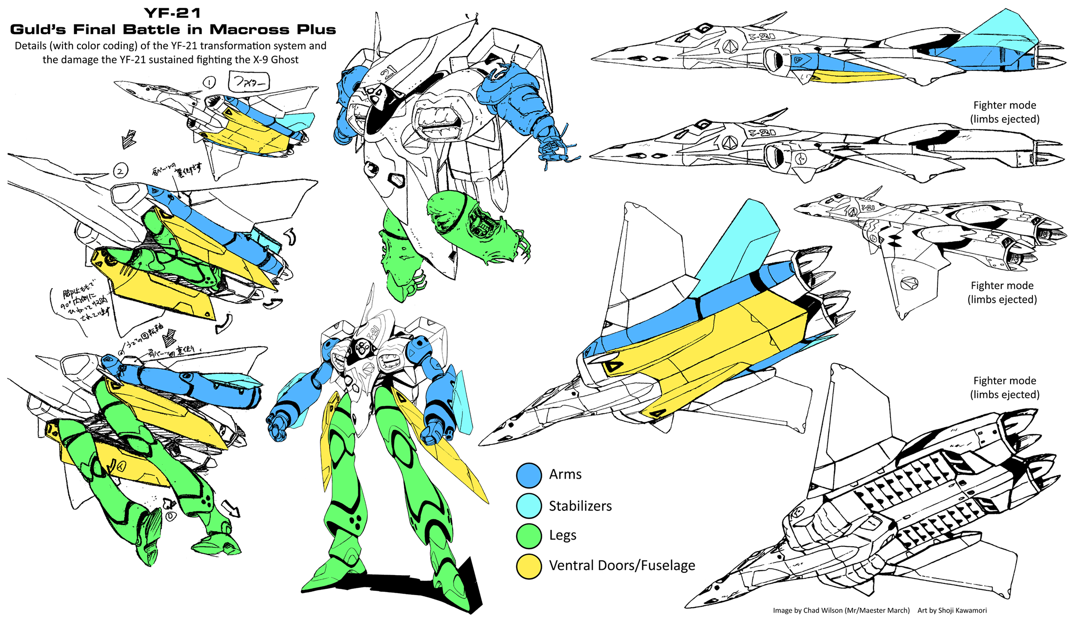 Original mechanical designer: Shoji Kawamori, Kazutaka Miyatake (cockpit), Shigeki Ninomiya (colored schematics) |