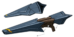 2 x arm shields (tail stabilizers in fighter mode, lower arm in GERWALK/Battroid modes); function in concert with barrier system