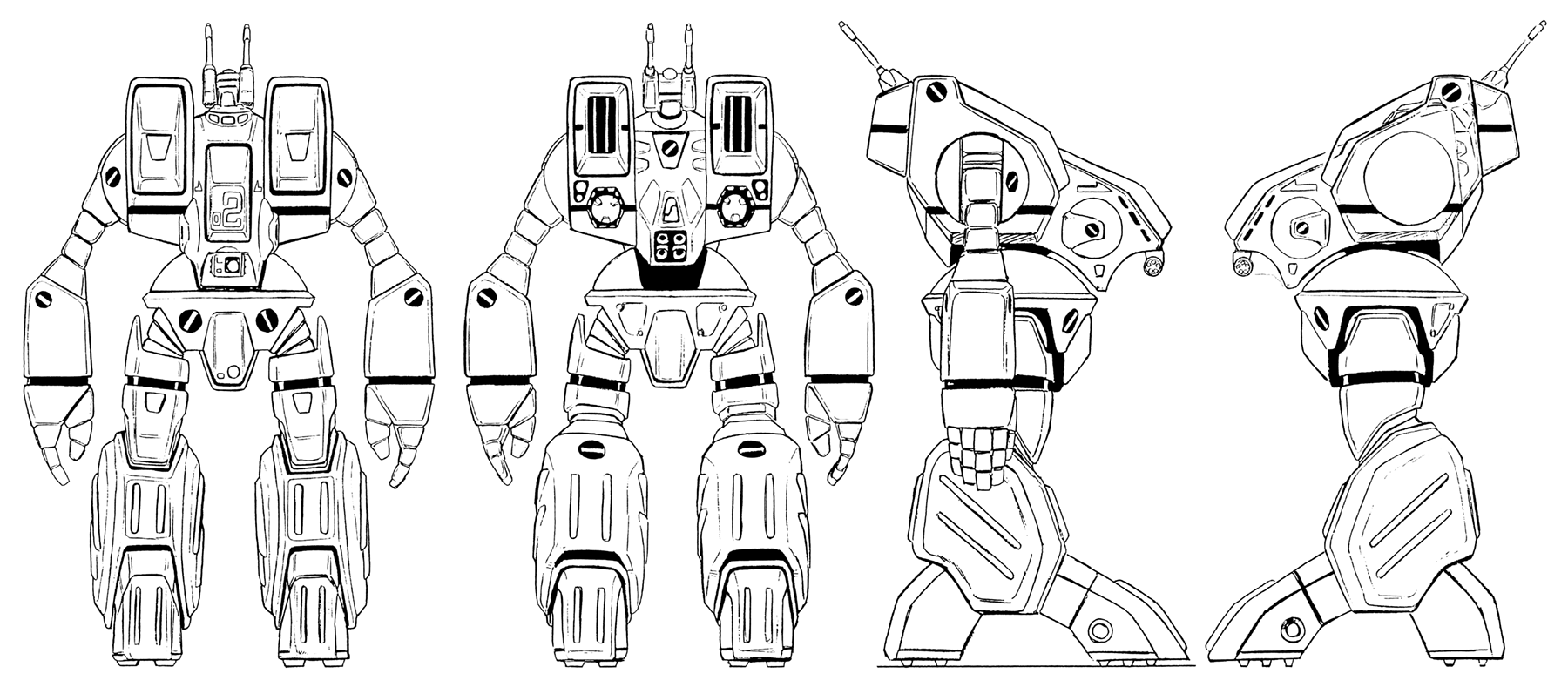 Design Features: infrared searchlight/targeting turret in fore of the center torso; cockpit hatch (located on the parietal area); meters and throttles line the cockpit; 3 x large monitors and 1 x sub-monitor (located in the lower front area); back armor is a retractable engine cover improving maintenance of the high-powered engine; rocket nozzle cluster is installed beneath the engine cover for increase mobility; taillights under the rear shoulders