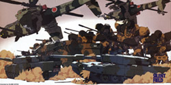 Description: This desert camouflage scheme for the ARL-99B Helldiver originally features in a Mobile Police Patlabor illustration titled "Silent Field" drawn by Hajime Katoki. Since the Helldiver in this style is never shown in full view from top to bottom in that illustration, the custom art featured here is my interpretation of the full color pattern.