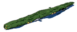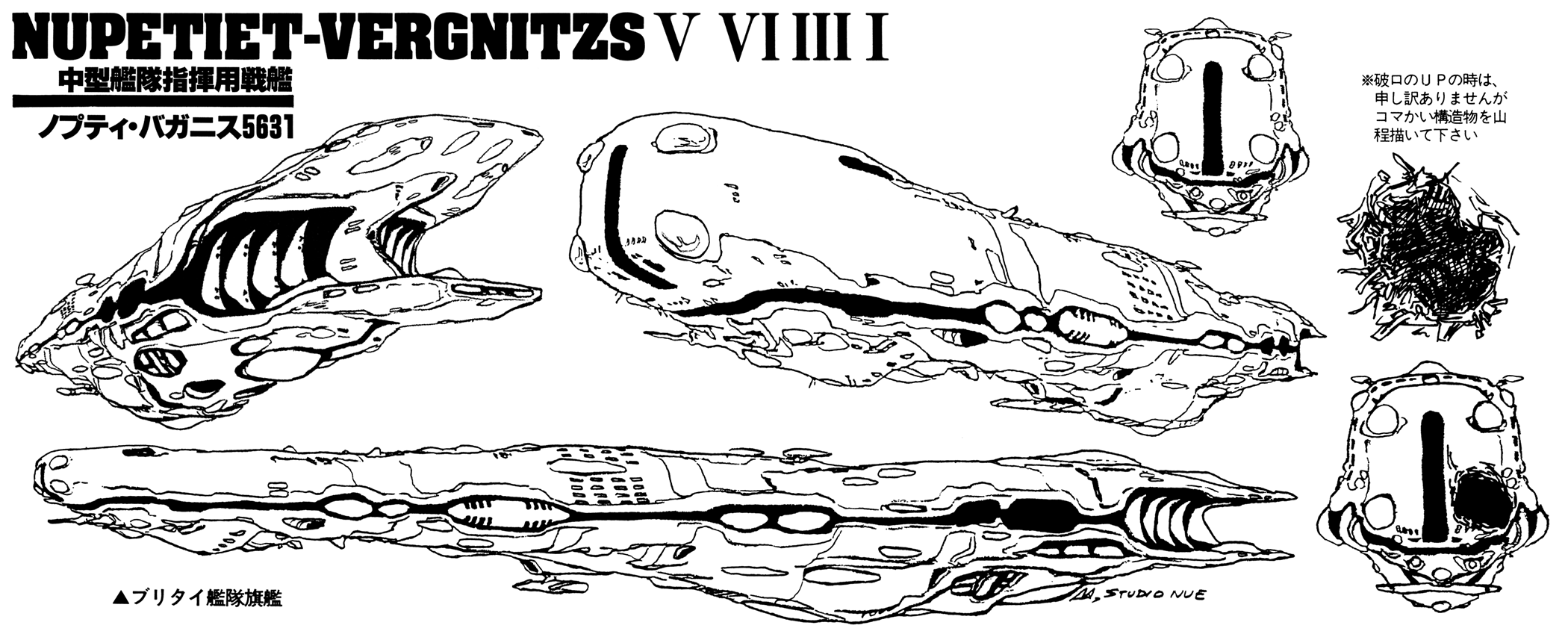 Many Zentradi space warships fill the ranks of the New UN Spacy fleets (NUNS), including the Nupetiet-Vergnitzs Class Fleet Command Battleship. In the 2092 Mardook invasion, the Nupetiet-Vergnitzs class were some of the first ships to see battle. Many of these vessels were stationed at the Mars Defense Line, orbiting the Minmay Defense Satellites that act as the first line of defense against hostile Zentradi fleets. The Nupetiet-Vergnitzs ships of the New UN Spacy are very similar to the ships of Space War I, but have a slightly different hull color, bear NUNS emblems and the four forward communication signal emitters are colored distinctly orange.