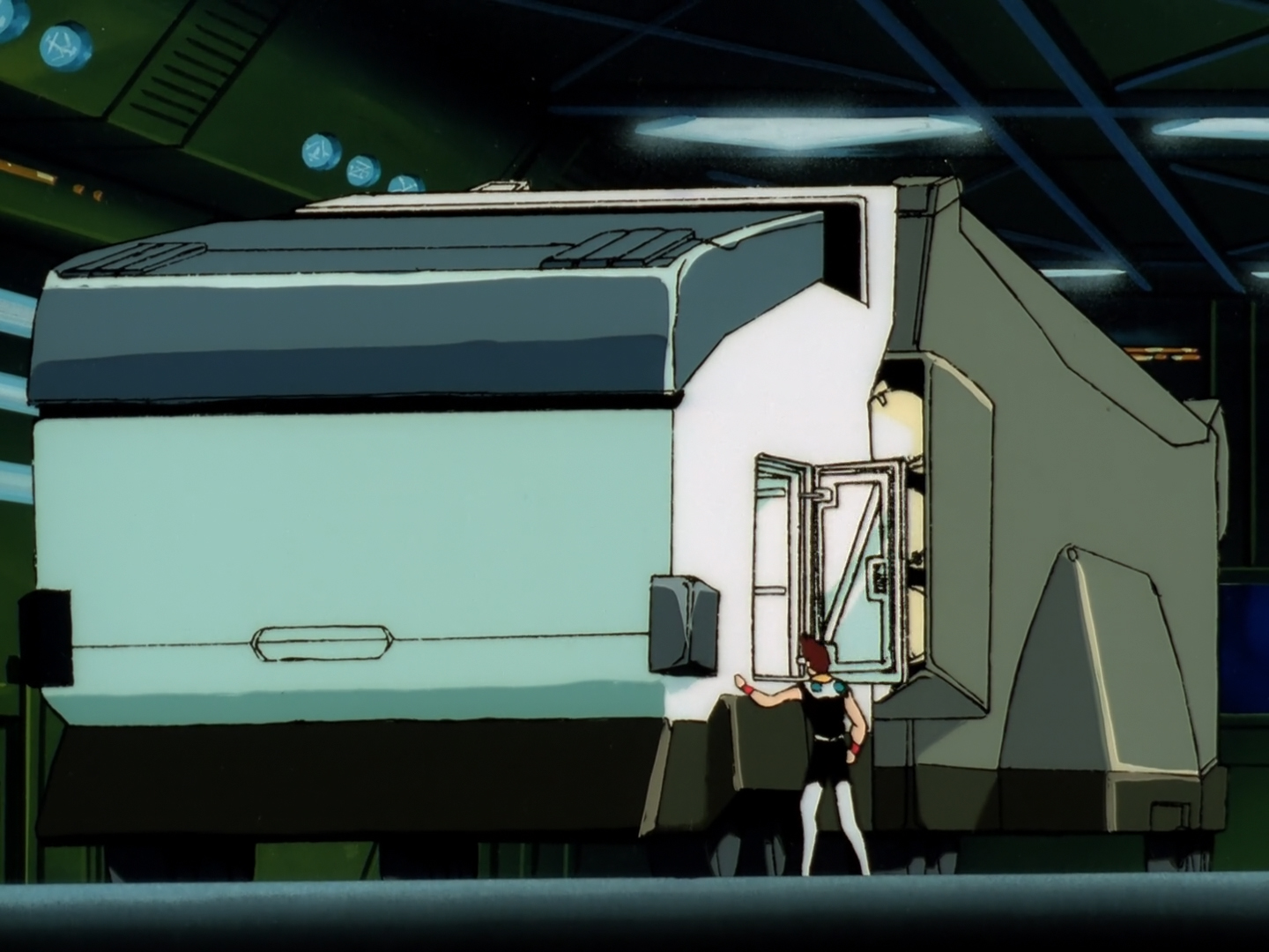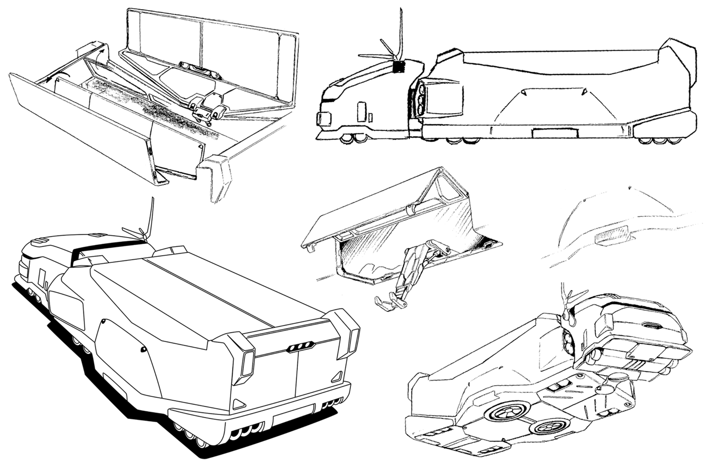 Design Features: 1 x large battroid-sized internal storage bay; several internal small vehicle storage bays; right/left side small cargo doors