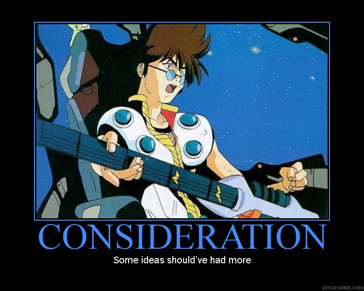 Enjoy these Macross Motivational Messages. Also, give a big thank you to Despair Inc., a hilarious parody website with a poster making page that was used to create these funny posters.