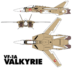 From February 2009 to March 2010, the VF-1A Valkyrie served as the standard variable fighter of the U.N. Spacy in Space War I. The VF-1 proved to be an extremely capable craft, successfully combating a variety of Zentradi mecha even in most sorties which saw UN Spacy forces significantly outnumbered. The versatility of the Valkyrie design enabled the variable fighter to act as both large-scale infantry and as air/space superiority fighter. The signature skills of U.N. Spacy ace pilot Maximilian Jenius exemplified the effectiveness of the variable systems as he near-constantly transformed the Valkyrie in battle to seize advantages of each mode as combat conditions changed from moment to moment. The basic VF-1 was deployed in four minor variants (designated A, D, J, and S) and its success was increased by continued development of various enhancements including the GBP-1S "Armored" Valkyrie and FAST Pack "Super" Valkyrie weapon systems.