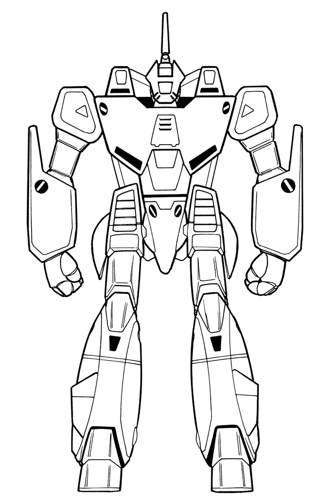 Design Features: 3-mode variable transformation; variable geometry wing; vertical take-off and landing; control-configurable vehicle; fly-by-light; rectangular underfuselage air intakes with intake vane, variable ramps, and retractable cover shutters (for Battroid mode or space use); single-axis two-dimensional thrust vectoring nozzles operate in lieu of conventional elevators and horizontal stabilizers and in tandem with wing thruster roll control system; one ventral fin under each engine nacelle; large airbrake directly rear of cockpit canopy (nozzle feet operate as airbrakes also); two-section flap (with spoiler) and fowler flap occupy almost entire wing trailing-edge; leading-edge slats; conventional rudders with honeycomb construction in outward-canted vertical tail surfaces; two cooling sub-air intake/airframe lift adjustment slits located on forward main body in Fighter mode operate in lieu of glove vanes by controlling airflow; four times the mobility of the Destroid Spartan; three "magic hand" manipulators for maintenance use; retractable canopy shield for Battroid mode and atmospheric reentry; retractable tricycle undercarriage (landing gear) with two steerable nosewheels retract rearward into nose and twin coupled mainwheels inward into fuselage; 2 x arresting hooks mounted underfuselage on engine nacelles; 2 x forward-looking infrared (FLIR) sensors in recessed emplacements within leg-joint nacelles (built below and to the fore of the cockpit canopy in egg-shaped blisters on either side of the Fighter mode nosecone); option of GBP-1S system, atmospheric-escape booster, or FAST Pack system