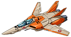Design Features: 3-mode variable transformation; variable geometry wing; vertical take-off and landing; control-configurable vehicle; fly-by-light; rectangular underfuselage air intakes with intake vane, variable ramps, and retractable cover shutters (for Battroid mode or space use); single-axis two-dimensional thrust vectoring nozzles operate in lieu of conventional elevators and horizontal stabilizers and in tandem with wing thruster roll control system; one ventral fin under each engine nacelle; large airbrake directly rear of cockpit canopy (nozzle feet operate as airbrakes also); two-section flap (with spoiler) and fowler flap occupy almost entire wing trailing-edge; leading-edge slats; conventional rudders with honeycomb construction in outward-canted vertical tail surfaces; two cooling sub-air intake/airframe lift adjustment slits located on forward main body in Fighter mode operate in lieu of glove vanes by controlling airflow; four times the mobility of the Destroid Spartan; three "magic hand" manipulators for maintenance use; retractable canopy shield for Battroid mode and atmospheric reentry; retractable tricycle undercarriage (landing gear) with two steerable nosewheels retract rearward into nose and twin coupled mainwheels inward into fuselage; 2 x arresting hooks mounted underfuselage on engine nacelles; 2 x forward-looking infrared (FLIR) sensors in recessed emplacements within leg-joint nacelles (built below and to the fore of the cockpit canopy in egg-shaped blisters on either side of the Fighter mode nosecone); option of GBP-1S system, atmospheric-escape booster, or FAST Pack system